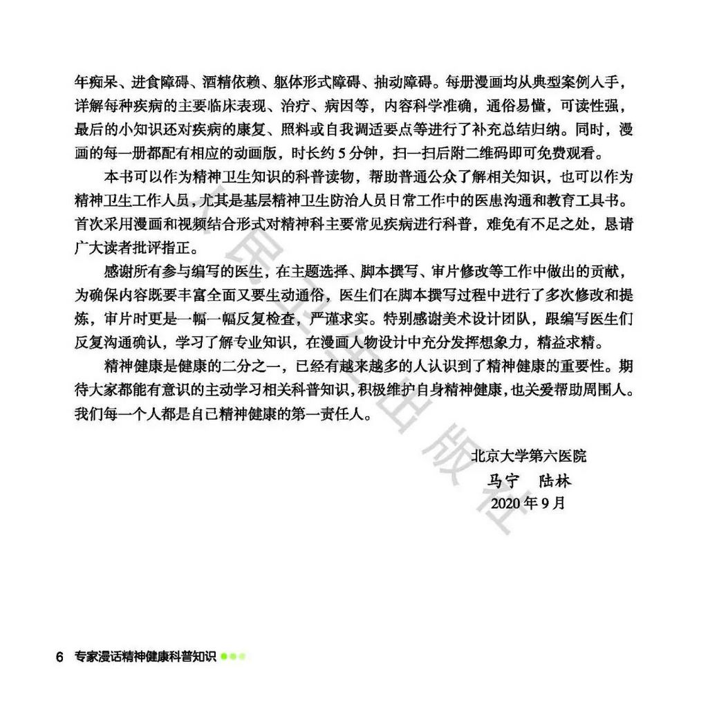 精神健康是健康的重要组成部分,没有精神健康就没有健康。为了提高大众对精神健康的重视,加强对精神障碍的了解,潍坊市精神卫生中心转发由北京大学第六医院组织医院青年医生和知名专家组成的专业团队采用漫画形式撰写的《专家漫画精神健康科普知识》。我们每一个人都是自己精神健康的第一责任人。期待大家能有意识地主动学习相关科普知识,积极维护自身精神健康,也关爱帮助周围人。